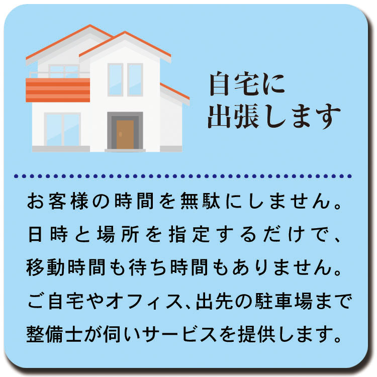 「車の整備・修理・パーツ取付」サービスです。いつでも、どこでも、国家資格を有する整備士が出張します。