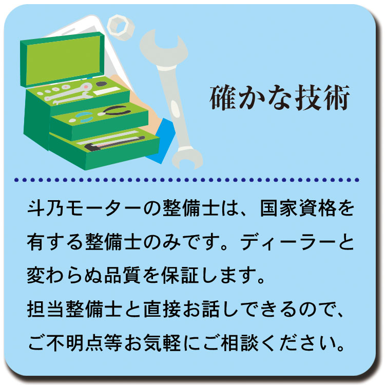 車検で定期的にお車をメンテナンスすることは大切ですが、毎日、快適に乗り続けていただけるように、車検を受けてから次の車検まで、定期点検を無料で行います。カーディーラー以上に安心していただけるように、きめ細やかなアフターフォローをいたします。